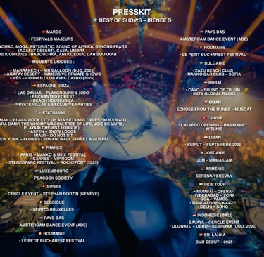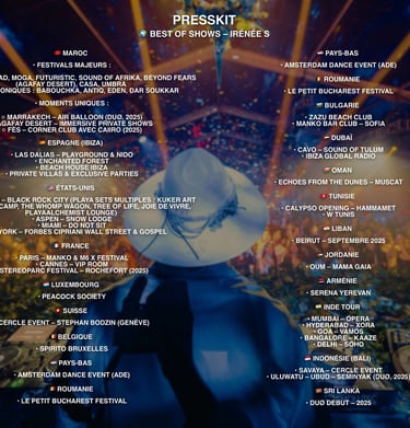 IRENEE S. A FRENCH-BORN ARTIST. IS THE VISIONARY FOUNDER OF DUO BY IRENEE S. AN INNOVATIVE CONCÉPT WHERE HE PERFORMS ALONGSIDE ANOTHER ARTIST WITHIN A MESMERIZING MIRROR-THEMED STAGE DESIGN, PUSHING THE BOUNDARIES OF LIVE MUSIC.